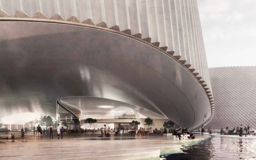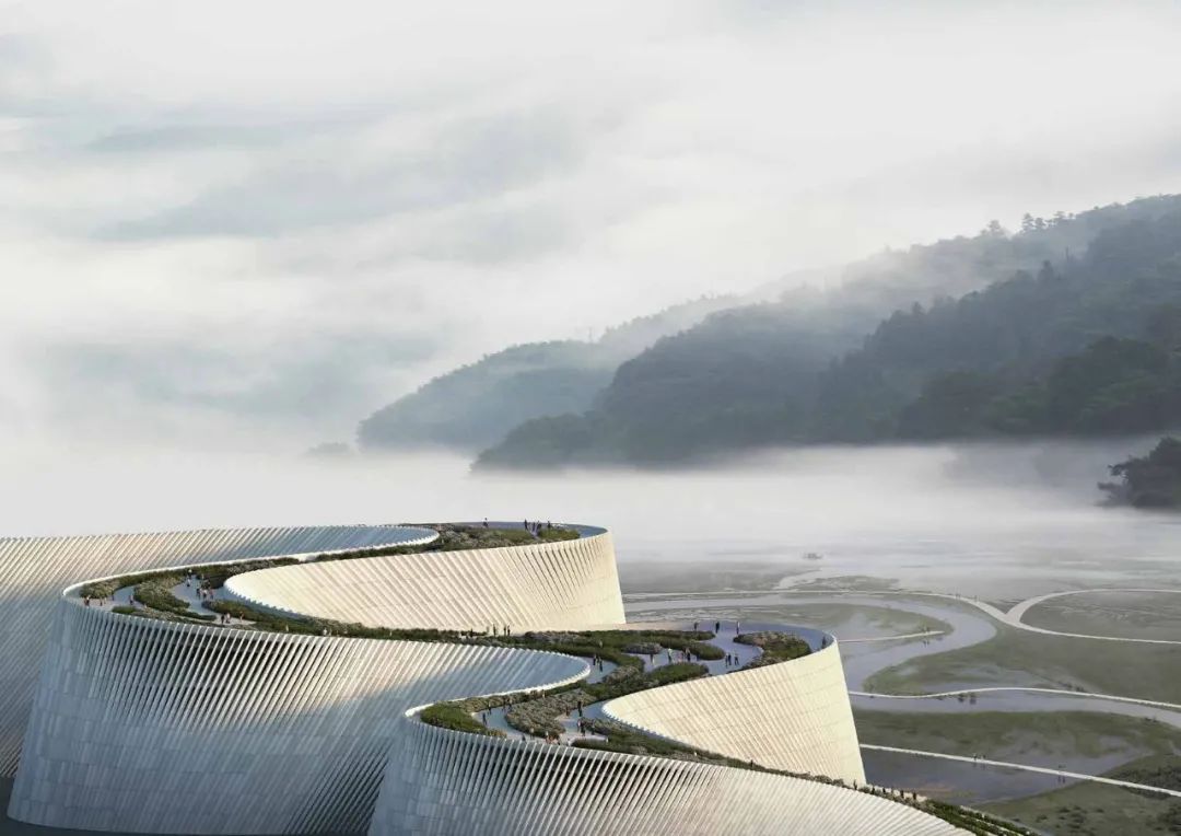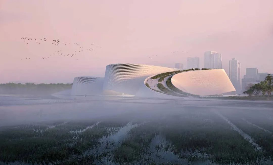 经审议, 最终确定“贝加艾奇(上海)建筑设计咨询有限公司 + 3XN A/S + 筑博设计股份有限公司”联合体的“三角洲”为中标方案。深圳自然博物馆从河流三角洲蜿蜒而起,自然地吸引游客和市民走上屋顶,进入一段旅程。作为公共公园网络的延伸,博物馆的目标是将绿植区域尽可能扩大。从清晨慢跑到傍晚散步,全天都有各种活动维持着这片区域的生机。覆盖着整个屋顶的公园,突出了深圳自然博物馆的有机几何形状。就像一条河流在与土地的平衡中成型一样,沿着独有的屋顶观景台,处处都能欣赏周围自然公园、燕子山和湖泊的多重景致。城市一侧到河畔公园之间的巨大空间,自然地吸引了从市区方向前来的居民和游客走进一座大型广场。外立面宛如河水顺流而下,游客被顺势引导进入通往洞穴的通道,走向博物馆的大厅,经过多个咖啡馆和公共空间,最终抵达建筑的中心点。概念很有创意。景观屋面的连续倾斜外墙,创造了连续的体量和空间体验。峭壁的形式构成非常有趣,而且细节处理得比较好。博物馆的布局及其与坡道和墙体的互动创造了有趣的空间。建筑抓住了一个滨河场地的独特氛围,在水的元素中找到了“永恒”这个特质作为概念。融合了这个项目最重要的两个特质:对一个新博物馆本身的需求,以及对一个新的公共滨河公园的需求。用一种当代的方式将建筑与过去、将来联系起来,给予了建筑一种优雅的、永恒的特质,这是一个比时尚更重要的特质。功能、场地、概念、结构、材料和空间之间的联系非常清楚。方案结合燕子湖公园的特点,作为景观路径延展,与周边景观视角融为一体。建筑形式语言大方得体,有很强的城市公共空间属性,具有标志性。建筑形体流畅舒展,贯穿屋顶的公共空间与自然地形融为一体,形成独特的“城市—自然”空间。建筑设计呈现的效果符合城市、景观及自然博物馆的定位和特征。展陈流线及空间形态新颖,创意性强。提供了充足的室外及屋顶市民公共活动空间。方案充分回应了场地条件中山水的影响,通过一个蜿蜒动感的建筑造型,塑造了一个优美、自然并富有活力的自然博物馆创意。方案具有很好的开放性,向城市开放、向公众开放,建筑的屋顶是一个与地面联通的开放平台,体现了山水环境、建筑、人有机融合的理想意境。
